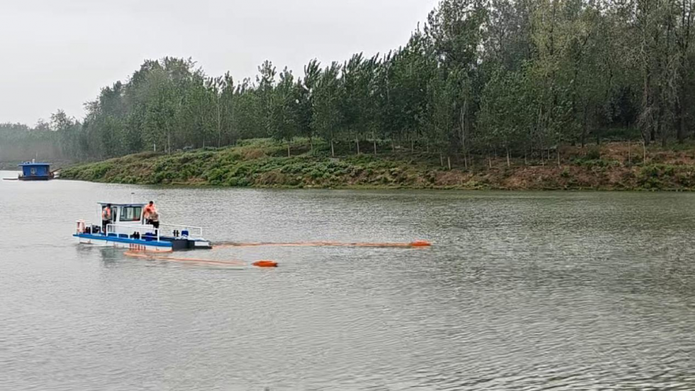 (全自動割草船在泉河七漁河排澇泵站附近作業(yè))
